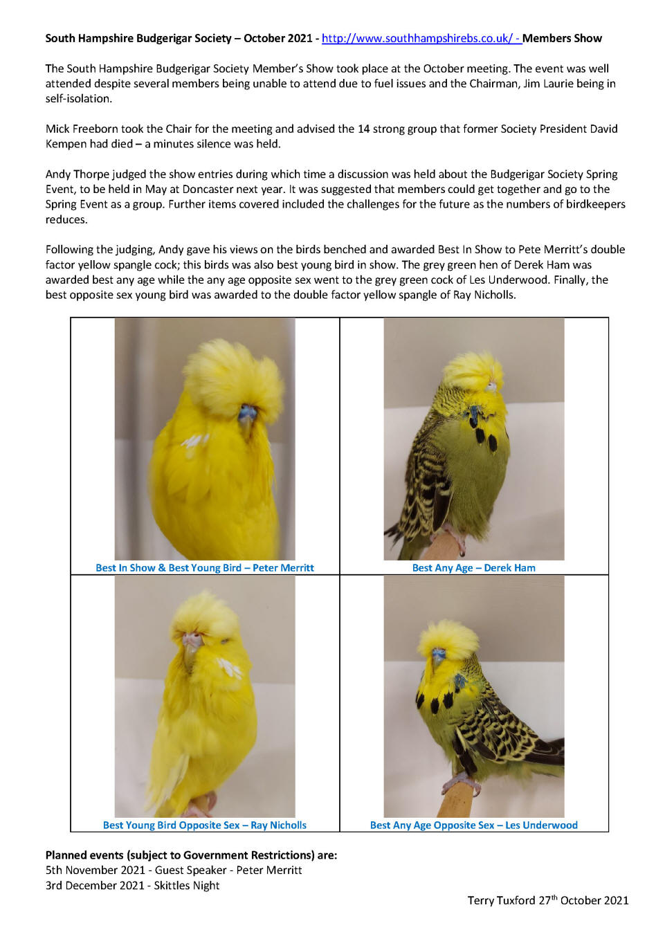 Lawrie. The evening consisted of discussions on how members had